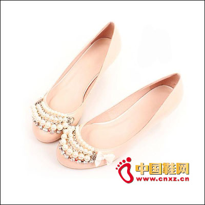 鞋頭鑲上珍珠水鉆的設計,顯得女人味十足,而且好搭配,看起來也非常潮流。
