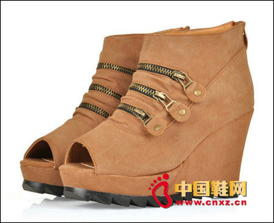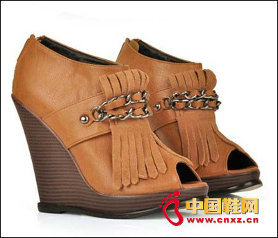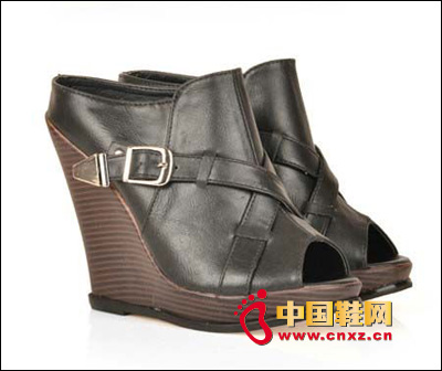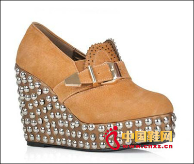 中國鞋網3月29日訊,鉚釘一直是設計師常用的時尚元素,此款坡點單鞋,設計師巧妙地將鉚釘搭扣元素運用與坡跟處及鞋面上,小小搭配,靈瓏剔透,復古懷舊感。魚嘴設計,鋸齒鞋底防滑,統一鞋面坡跟質地,簡約的款型,沒有過多的修飾,但彰顯了一處含蓄的性感,非常適合知性OL服飾搭配。