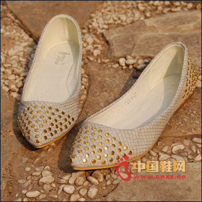 歐美風,高品輕頹風鉚釘裝飾,尖頭淺口舒適平底單鞋。