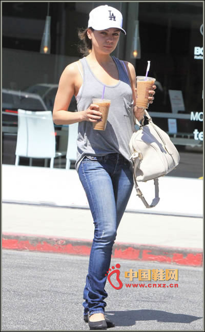 Mila Kunis最近出鏡機(jī)會也漸漸多了,她用口袋裝飾的基本款背心搭配磨白牛仔褲出街,青春氣息十足。