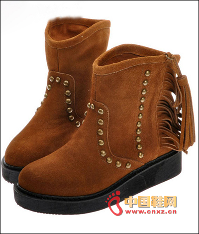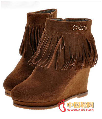 大圓頭的運用,要訴說的是一種狂野的內心向往,深靜時是一種對無古氣息的懷念,毛邊的修飾,多了溫暖感和俏皮感,穿這樣一款靴,搭配牛仔破洞褲,牛仔背心,現代都市的時尚MM是否已經回到了那原古?