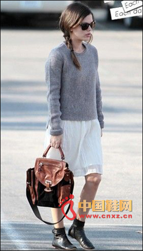 時(shí)尚解析:平底短靴時(shí)尚舒適,黑色款可以走帥酷風(fēng),又能走甜美風(fēng)。搭配短款毛衣和白色紗裙有這鄰家妹妹的甜美感。當(dāng)短靴搭配裙子時(shí),裙長最好在膝上10CM左右處,這樣才能展現(xiàn)你完美比例。