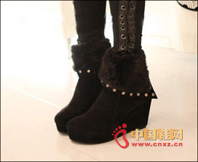 坡跟的款,圓頭的款。翻毛裝飾,鉚釘裝飾。歐美風十足。顯瘦的款,增高顯瘦的版。盡顯小女人嫵媚。