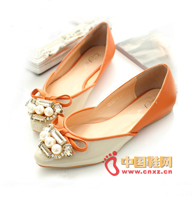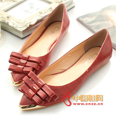 美腳精靈時尚金屬裝飾尖頭印花蝴蝶結平底單鞋,3條帶狀蝴蝶結修飾單鞋,公主風盛行,當然少不了它,清新,自然,粉嫩,簡約,純凈,柔美,屬于花樣女孩的專屬單品,像公主般高貴,又像芭蕾舞者般優雅,回頭率100%,顯得活潑可愛。