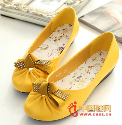 美麗天使水鉆蝴蝶結小圓頭平底單鞋,小小的圓型鞋頭設計,俏皮憨厚又可愛,鮮艷的果色鞋面,特別是水鉆蝴蝶結的修飾,將小女生的甜美俏皮之氣發揮得淋漓盡致。精致的著色,帶動又一次流行狂潮。