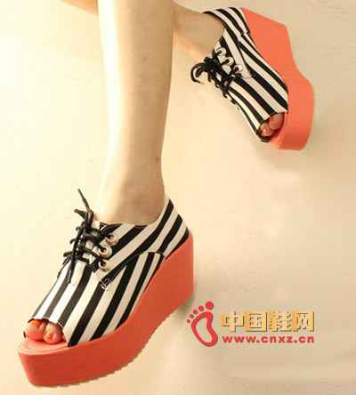 魚嘴厚底羅馬松糕鞋,時尚個性條紋松糕鞋,穿上很時尚,也很舒適,絕對的百搭款。