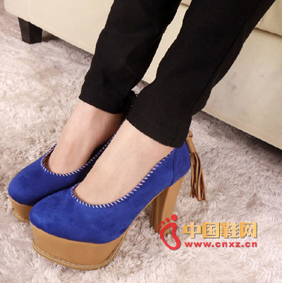 麋絨面超厚底粗跟高跟單鞋,后面的流蘇裝飾,有了些許民族風的味道,很顯氣質。