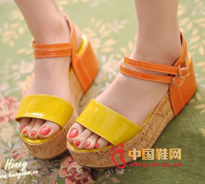 木質厚底拼接亮色漆皮,腳踝雙搭扣設計利落干練。本季流行糖果色碰撞,不一樣的火花。歐美范兒厚底涼鞋,率性有型。