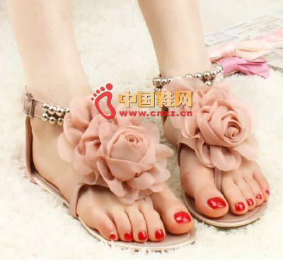 上腳超美,浪漫而又甜美的雪紡大花簇點(diǎn)綴裝飾著,非常的迷人而又淑女。