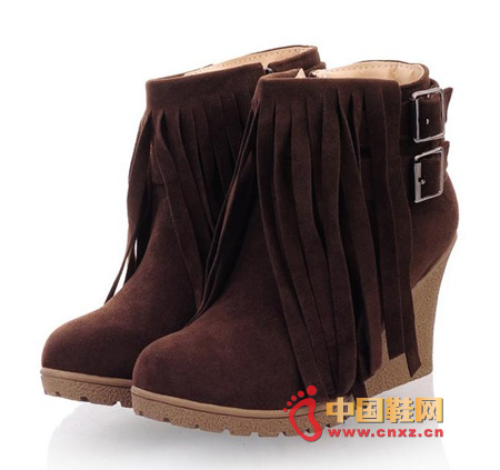 各大日雜及力推薦秋冬波西米亞坡跟流蘇美靴,剛剛好的短靴,不但不會使腿型變粗,塞長褲也是超級好看!假如你還在安于簡單的黑白灰,那么必將和這個美麗的秋冬擦肩而過。