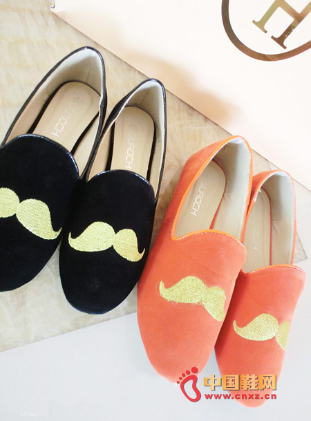2012年絕對新款流行款式,趣味的胡子和貓臉裝飾,亮麗的鮮艷色調,讓這雙平底鞋增添了許多趣味性。