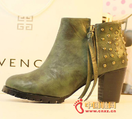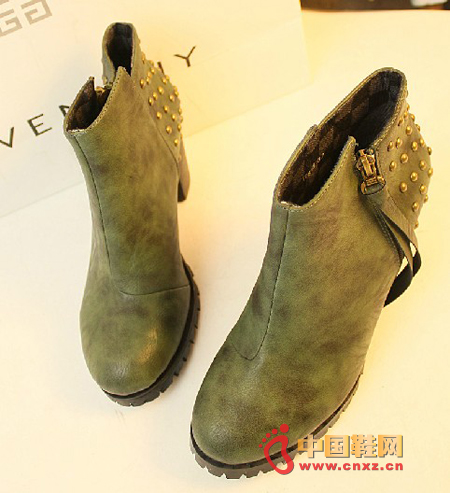 2012年冬季圓頭粗跟鉚釘靴,鞋型很美,所以搭配衣服一點都不費勁,隨便一件打底褲或是牛仔褲都能搭。盡顯歐美街拍的大牌氣場。