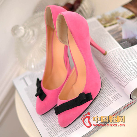 優雅風尖頭高跟鞋,很有大牌的設計感,優雅嫵媚的線條,細致到位的剪裁,完美修飾腳部線條,側邊緞帶蝴蝶結的裝飾非常別致,加上尖頭加細跟的設計,氣場立馬大提升。