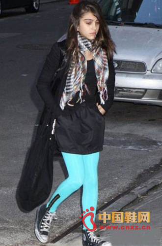 天后麥當娜的女兒羅蒂絲(LourdesCiccone)小小年紀已經很有自己的穿衣風格!超大包包真是個性十足,霓虹綠色打底褲標榜了年輕態度,高幫帆布鞋更是不可或缺的元素!