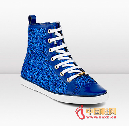 閃光面料用于運動鞋的設計已經屢見不鮮。但這款海藍色的亮片高幫運動鞋還是讓小編的心像馬兒狂奔。飽滿的色彩時髦度極高,也注定了它讓人不可忽視的本質。