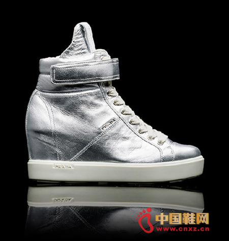 閃亮金屬色近年來非;鸨。這款隱形高幫運動鞋充滿未來感,讓你的搭配時髦度爆燈的同時也保持了高挑身材。