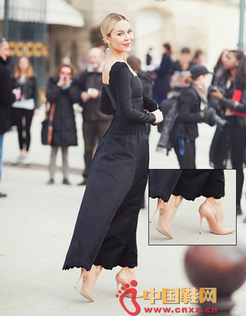 一貫的復古范用黑色長裙凹處玲瓏的身材,邊角的花朵式樣充滿的美好完全沒有黑色的沉悶感。更難能可貴的事絲綢布料的瑩潤會讓復古更加有貴族的氣質,而這雙粉色的恨天高嬌嫩的色彩讓春天來的更美好,翹翹的設計也能有與以往不同的時尚感。