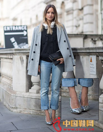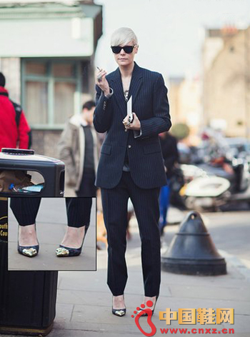 一整套西裝還是媽媽時代的條紋也能穿出時髦來靠的是一個肥大的樣子和麻豆本來就高挑的身材。所以搭配上這款恨天高多少會讓人覺得有些混搭的意思,而且金色的亮片點綴下的光澤也讓整體不再沉悶,細節只要一點就能改變整體哦。