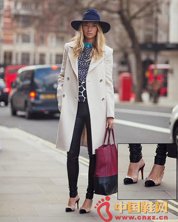 街拍潮人或是時髦女星都在單品上統一加上透明材質,跟上時尚的腳步咱也不能落下。這款尖頭的好處就在于此,不光是用黑色和紅色宣揚出傳統的霸氣,圍繞腳面的一圈透明或許能將質感營造出別樣的好看。