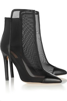 透視配飾在今春搶盡了風頭。ReedKrakoff 這款及踝靴將古典玫瑰色和黑色皮革與裸色網眼面料完美融合。建議用這一走秀款搭配短裙。
