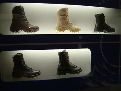 為參與伊拉克戰(zhàn)爭的美國大兵制鞋的廠家也參與展會,其展示的鞋款,充分顯現(xiàn)了美國人個性張揚的性格,外觀十分講究霸氣。當然,大兵鞋只是占據(jù)市場一角而已。參展人士介紹稱,色彩炫麗、設計風格獨特而富有藝術(shù)感的鞋款,同樣彰顯個性,在美國市場上十分熱門。