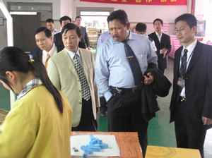 在康奈,參贊們先參觀后聽介紹。康奈廠區規模之大、環境之優美、制鞋工藝技術之先進讓客人大開眼界。在公司形象展示中心,特別是在介紹康奈商標釋義和鄭秀康創業歷程的宣傳畫前,鄭秀康25年間能帶領一幫人把康奈做成中國鞋業領軍企業,東盟貴賓都很驚訝和欽佩。
