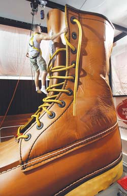 巨人之鞋5月4日,一只巨大的鞋子在美國(guó)勞工聯(lián)盟及產(chǎn)業(yè)工會(huì)聯(lián)合會(huì)上亮相。這個(gè)鞋子長(zhǎng)20英尺,寬7英尺,高16英尺,重達(dá)2300磅。據(jù)悉,這樣大小的鞋子適合一個(gè)高120英尺的人穿,也就是說(shuō)這個(gè)人要有16個(gè)姚明那么高。