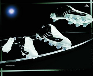 Adidas足球鞋的最新產品——+F50 TUNIT有出色的包腳設計和良好的抓地力,這是一雙以模組為概念的鞋款:將整只鞋分為Upper(鞋面)、Chassis(鞋墊)和Stud(鞋釘)三部分,每一部分都有多種設計好的配件供選擇,使用者可以根據自身喜好、穿著習慣和產地條件等對配件進行個性化的組合。