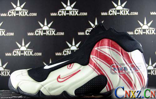 這雙鞋的外觀也十分搶眼,黑白配色的FLIGHTPOSITE ONE加上紅色的花紋,鞋前的紅色NIKE LOGO和鞋帶上方的原始NIKE LOGO形成了明顯的LOGO重疊,這也是十分特別的,在正式發(fā)售的鞋款中的從來沒有的,也是正常設(shè)計中不可能的做法,而且鞋面的FOAMPOSITE材料上又有方格壯的顆粒效果,可以說十分完美,而ALL-AMERICA NIKE CAMP的字樣更證明了他的身份和由來。