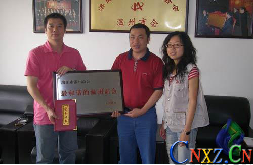 “天下溫州人走遍中國”活動采訪組授于河南洛陽商會為“最和諧的溫州商會”