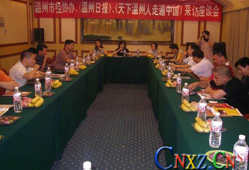 “天下溫州人走遍中國”暨“奧康創新萬里行”采訪組與鄭州商會人員親切交談