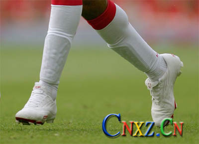 在博格坎普的告別賽上,亨利換上了新球鞋,這雙新鞋并不是VAPOR III的新配色,而是一雙全新的白色reebok足球鞋。