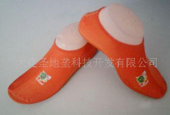 2006春夏第五代新款,高腰設(shè)計,鞋邊加上一圈膠條,并在鞋面上配以精致的卡通圖案,防硌、防滑、防菌、柔性,穿用時透氣好、彈力大、不吸水、不進(jìn)沙、解除硌腳、傷腳的憂慮,游泳時無阻力,可反復(fù)穿用。