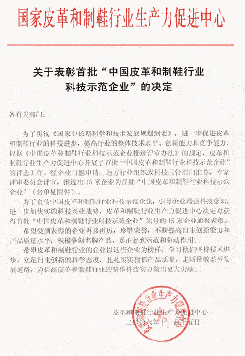 首批“中國皮革和制鞋行業科技示范企業”名單