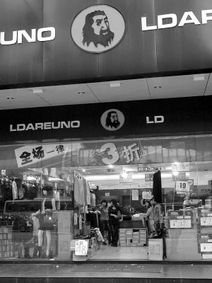 中山八路也有一家“老人頭”店,不過是“法國老人頭”,圖標也有點不一樣,是一個長滿胡須老人頭的側面像,但從遠處看,幾乎很難和其他“老人頭”分開。店主告訴記者,他們是代理總部在香港的法國老人頭服飾公司,和其他“老人頭”一樣,也是正宗的,只是不同的牌子。而在這個店內,大部分衣服和皮包、鞋等幾乎都是“三折”,原來160多元一件的衣服,也只賣到20多元。