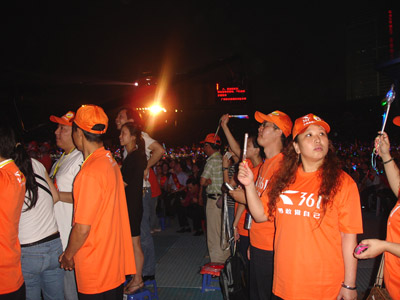 三六一度(中國)有限公司總裁丁伍號先生率強大的361°助威陣容參加了此次活動。丁伍號表示:作為《同一首歌》的公益戰略合作伙伴,向全國勞模、勞動者致敬是361°積極響應國家建設和諧社會倡議,倡導社會公益的行為。沒有勞動者長期的奉獻,就不可能有國家、社會和企業的全面繁榮。因此361°借攜《同一首歌》五一走進廣州之機,向全國勞動者、勞模致敬。
