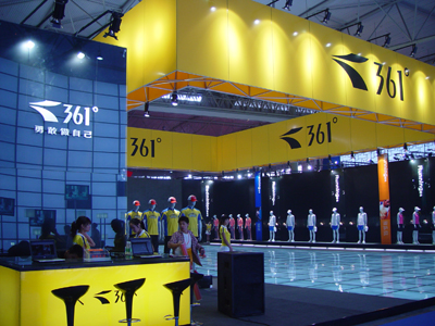 在此次行業第一盛會上,行業第一黑馬361°攜6大資源、8大系列運動鞋產品、6大系列運動服產品盛裝亮相。簡潔大氣的展廳設計,100多平米LED的動態展示,把品牌發展脈絡轉化成為清晰而強烈的視覺沖力,成為當天早上體博會上吸引專業級游客最多的展廳之一。