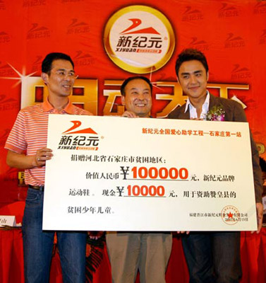 6月13日,由福建晉江市新紀元鞋業發展公司發起的“新紀元全國愛心助學工程”啟動儀式在石家莊舉行。共青團石家莊市橋東區委員會李秀娟書記、河北省贊皇縣董偉副縣長、等有關領導出席了本次儀式。