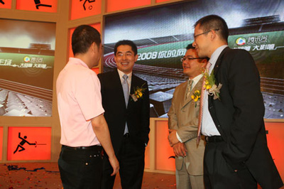 北京時間7月5日14:00,騰訊2008奧運報道戰略發布會如期舉行,正式發布騰訊奧運報道口號,并首次向外界披露騰訊網在奧運報道規劃和奧運報道社區互動方面的準備工作。圖為騰訊公司總裁劉熾平、騰訊公司網絡營銷服務與企業品牌執行副總裁劉勝義、騰訊公司副總裁、廣告事業部總經理劉朝陽與361度總經理丁伍號親切交談。