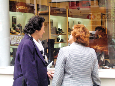 近日在法國康奈公司巴黎旗艦店,兩位巴黎市民正在廚窗外駐足看貨。康奈實施“走出去”戰略后,以并不低廉的價格,在巴黎市場站穩了腳跟,單店日銷量少則十來雙,多時可到幾十雙。