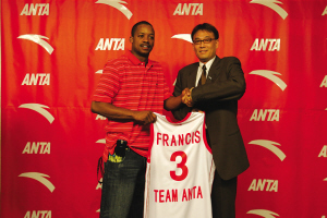 而在大洋彼岸的休斯敦豐田中心。盡管這里從來都不缺少中國人的聲音,但是當一句并不十分標準的漢語通過連線傳到大洋彼岸的中國時,還是震撼了所有的中國球迷。弗朗西斯面對電視鏡頭一字一頓地說出“安踏,永不止步”,標志著弗朗西斯正式成為中國領先的體育用品品牌——安踏旗下的簽約球員。