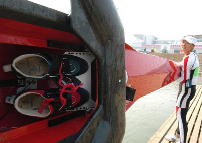 賽艇隊員登艇前需要穿鞋嗎?不需要,因為他們的鞋子早就被螺絲固定在了艇上。記者在城運會賽艇賽場看到,“調鞋子”也成為比賽隊員賽前準備的一項重要內容。