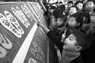 1日上午,鄭州市管城區實驗小學在課間時,辦了一次鞋墊展,為學生們上了一堂民間傳統文化課。