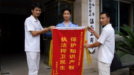 9月29日上午,德國(guó)彪馬公司將一面寫有“保護(hù)知識(shí)產(chǎn)權(quán)、執(zhí)法捍衛(wèi)民生”的錦旗送到了溫嶺市溫西工商所,感謝該所為維護(hù)企業(yè)的合法權(quán)益,打擊商標(biāo)侵權(quán)行為所作出的努力。