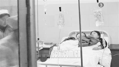 步奇鞋廠位于金花橋街辦七里村一組。記者趕到現場看到,除了樓房前的一塊招牌,這個廠和一幢三層民居沒有區別,大門已經緊閉。在收治工人的武侯區第五人民醫院,工人被集中安排在兩間觀察室內。由于床位不夠,女工們兩人躺在一張病床上,男工人則坐在靠墻的凳子上輸液。