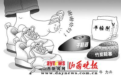 飛魚:用一用竹炭鞋塞吧!竹炭有強大的吸附能力,竹炭鞋塞可有效消除鞋內濕氣和臭味,使鞋保持干燥,并防止細菌滋生和繁殖。竹炭鞋塞在市里的大超市很容易買得到。晚上回家后,把竹炭鞋塞放入鞋里,第二天白天拿出來,放在太陽下曬一曬,等到晚上就又可以再次使用了,而且吸濕能力會更強。