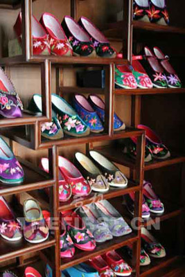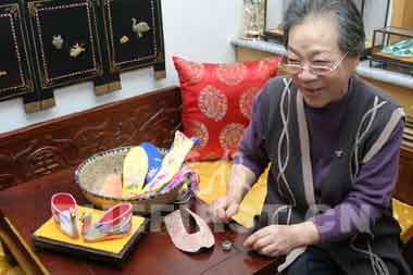 69歲的王冠琴老人不僅根據史書研制了歷朝繡花鞋300多雙,還招來了不少搶著購買的女白領,“名片我都不敢多發了,這幾天就有上百個電話打到家里要訂鞋。”