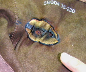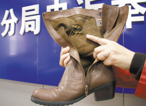 上個月,黃女士到上海出差時,看中了萊爾斯丹品牌的一雙黃牛皮女靴,并花980元買下來。前段時間,黃女士穿了幾次后,按靴子保養說明,于11月11日把靴子送到了金碧擦鞋店文亭街分店做保養。當天晚上,黃女士到鞋店取鞋。當她拿起右只靴子時,發現靴子外表右側花紋處皮面脆硬變形并出現褶皺現象,靴子里面的襯里皮子被烤成焦黑色的大洞,且靴子里外貫通性開裂。
