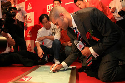 中國鞋眼下還在歐盟打著訴訟官司,而運動鞋的中國品牌則曲線瞄到了火箭的姚明隊友們。海耶斯(李寧)、巴蒂爾(匹克)、斯科拉等球員都擁有來自中國的高額代言合同,并且,我們還能時不時收到中國鞋在火箭隊因商業(yè)利益而可能“互踩”的信息。中國球員穿外國鞋(阿聯的一雙大腳也被耐克收至帳下),外國球員穿中國鞋——在NBA,這個現象最好不過地反映了中國球員和中國鞋的“體育身價”和“市場身價”的雙重秘密。