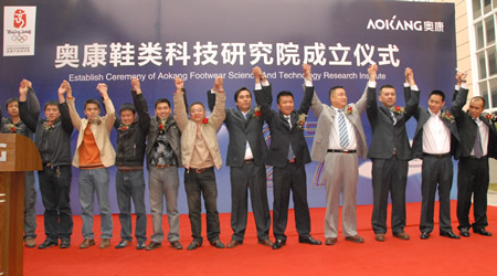 該研究院研究范圍涉及材料學、化學、人體生物力學、醫學、工藝美術學、運用心理學諸學科,采用實證分析及區域實驗結合,定性分析與定量分析結合,綜合研究與專題研究結合的方法,對奧康鞋類產品及原輔材料進行全面而深度的研究與定位。“透氣鞋、抗震鞋、納米鞋、計步鞋等科技鞋產品將源源不斷地從這里走向市場。”攜科技團隊加盟奧康鞋類科技研究院的中國皮革和制鞋工業研究院高級工程師方巖介紹說,“在優化現有的團隊資源的同時,將力邀國內乃至國際相關科研機構、科研精英加盟,使科研力量達到領先水平。”